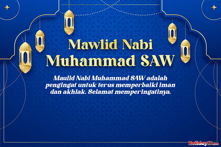 Kartu Mawlid Nabi Muhammad SAW Desain Islami Modern Latar Biru