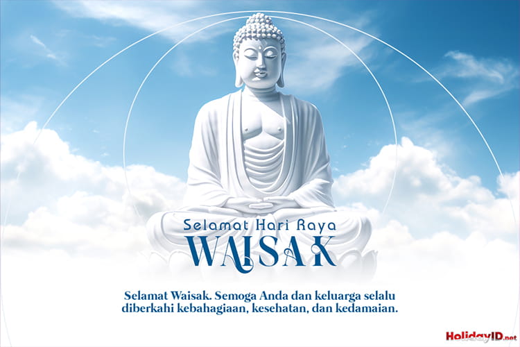 Kartu Ucapan Selamat Hari Raya Waisak Suci Bergambar Buddha di Latar Langit Berawan